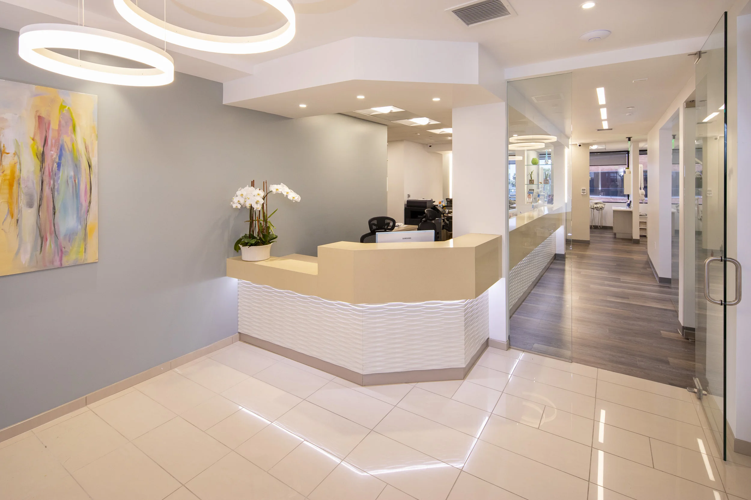 A healthcare interior that balances precision with comfort – bright, hygienic, and streamlined, yet softened by warm materials and natural flow for patients and staff alike.